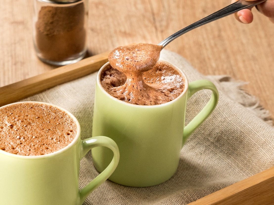 - Coloque a bebida em uma caneca, salpique mais um pouco de cacau. Sirva.