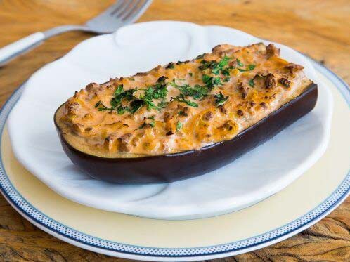 - Recheie as barquinhas de berinjela com a mistura preparada e leve para assar em forno alto, por aproximadamente 25 minutos. Salpique a salsinha e sirva em seguida.