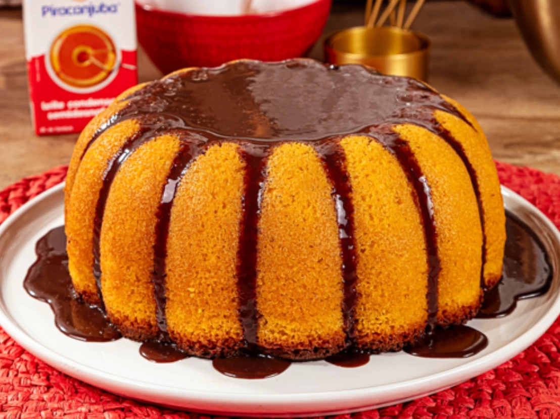 - Despeje a calda quente no bolo.
