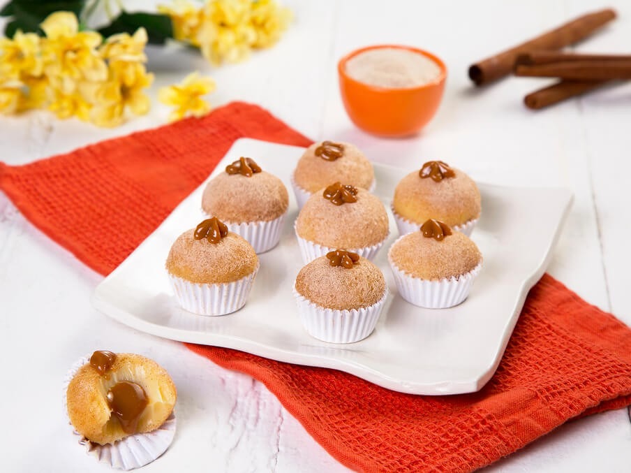 - Passe as bolinhas no açúcar e na canela. Coloque uma ponta de doce de leite em cima da bolinha de brigadeiro, até que a bolinha esteja inteiramente coberta.
