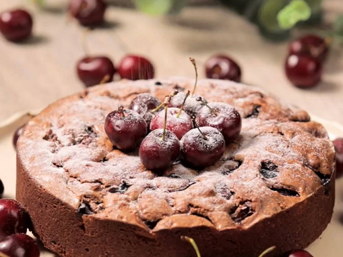 - Polvilhe açúcar de confeiteiro e use as cerejas para decorar.