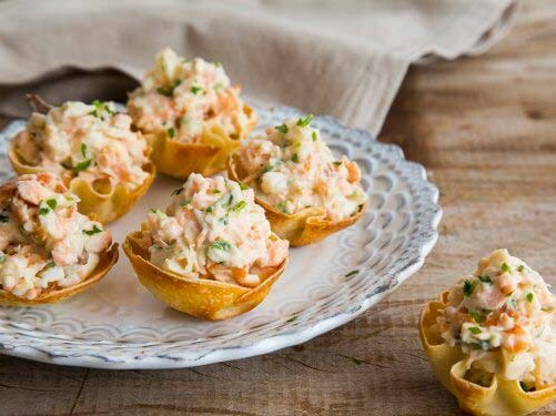 - Monte as cestinhas, recheando-as com a pasta salmão. Salpique a salsinha e sirva (quentes ou frias).