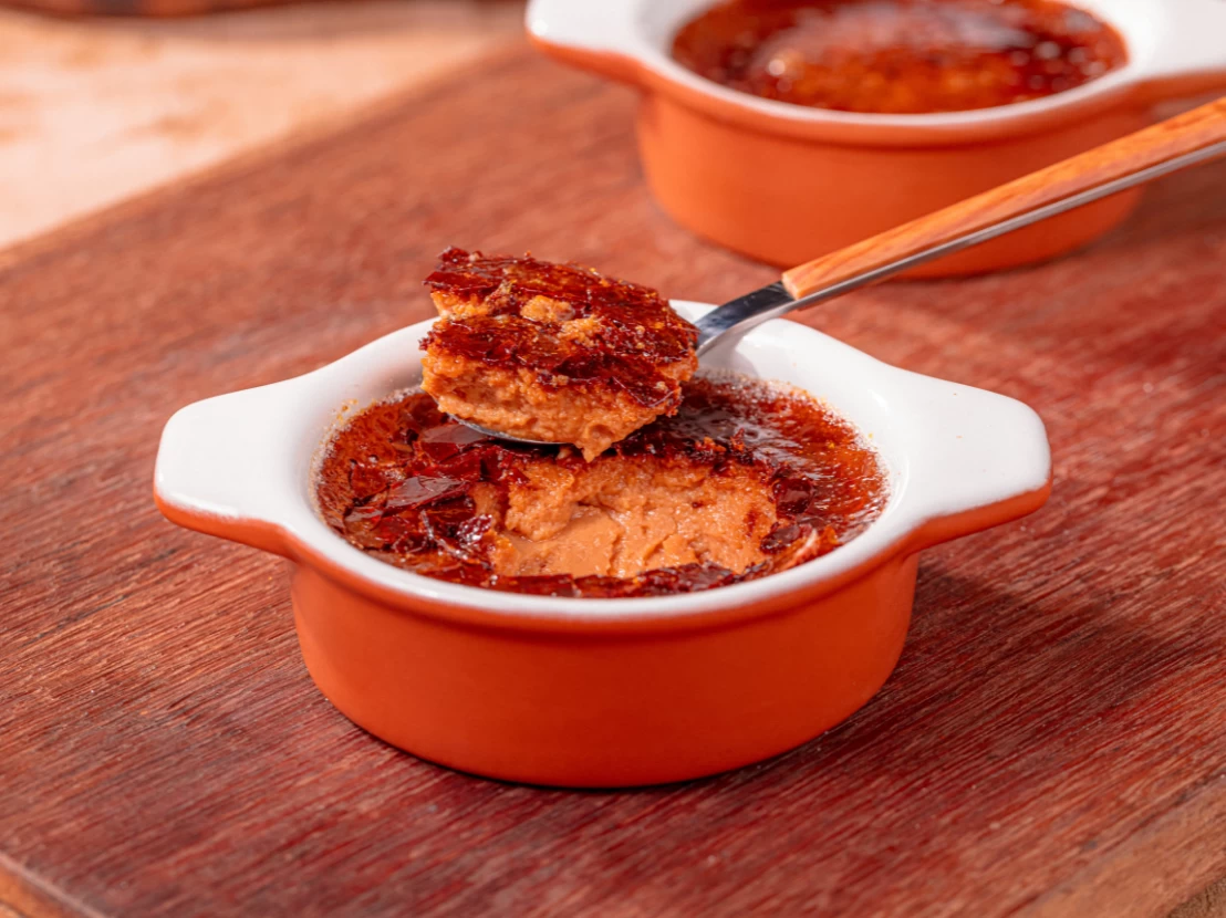 - Polvilhe o açúcar de confeiteiro por cima e passe o maçarico para fazer a casquinha.