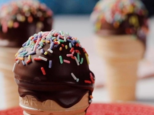 - Mergulhe a borda da casquinha de sorvete no chocolate derretido. Isso irá servir de cola para a massa o bolo não cair;