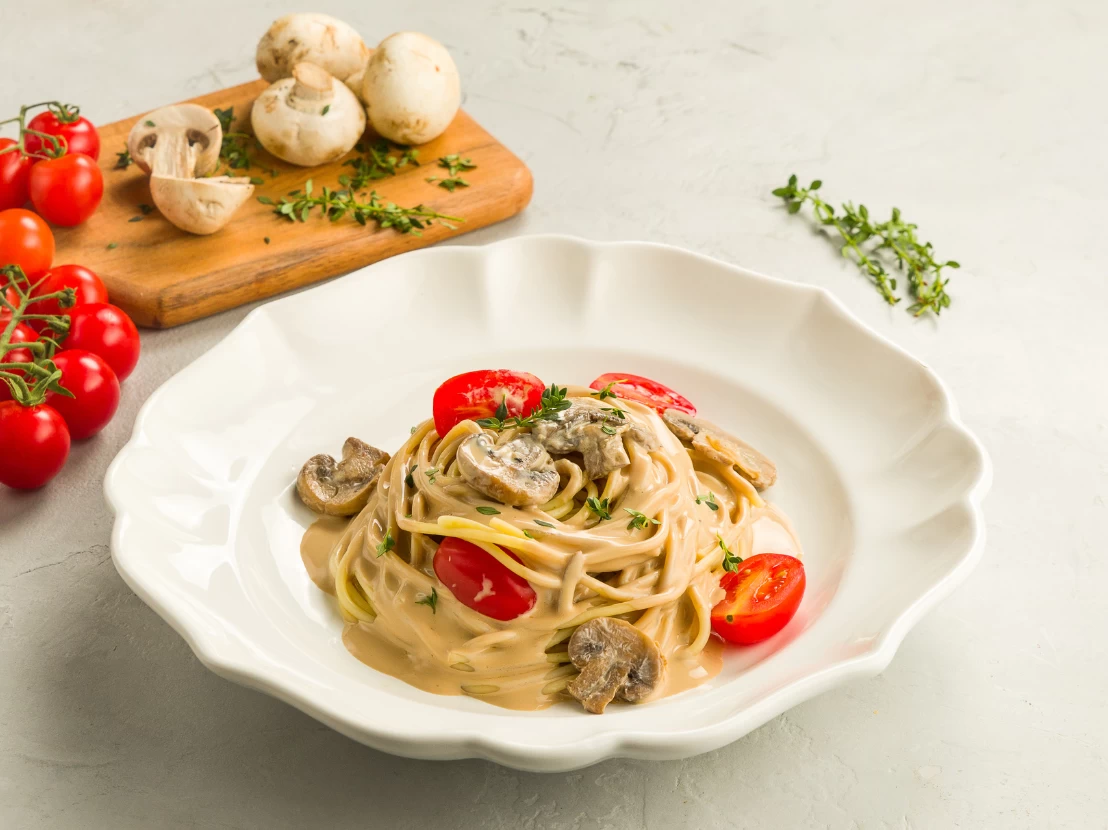 Espaguete ao molho cremoso de cogumelos