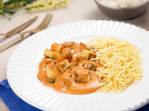 - Sirva com arroz e batata palha.