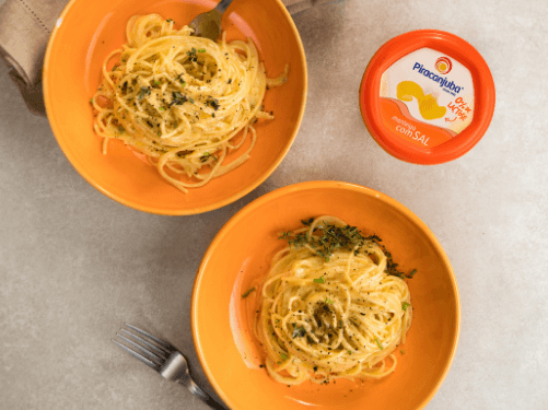 - Em uma panela, derreta a Manteiga com sal Zero Lactose Piracanjuba e coloque o macarrão. Vá adicionando o queijo e a água do cozimento aos poucos. Mexa, até que fique cremoso;