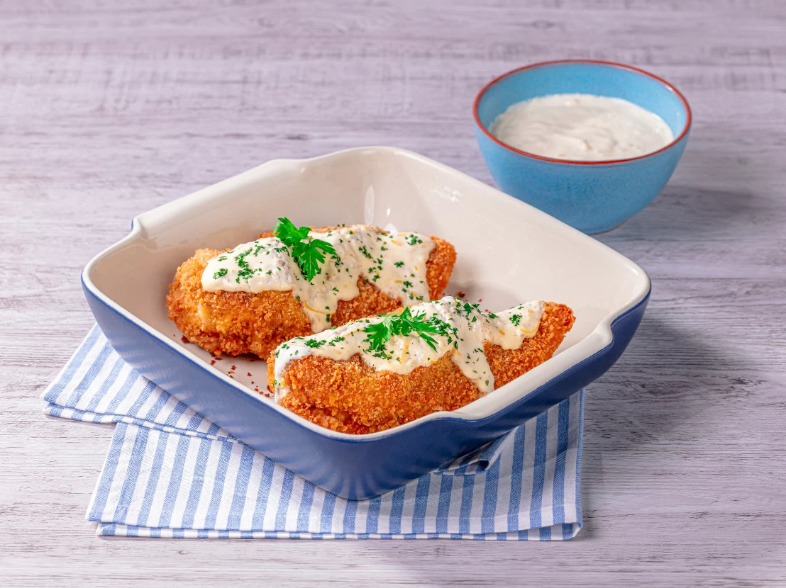 - Sirva com o filé de frango empanado.