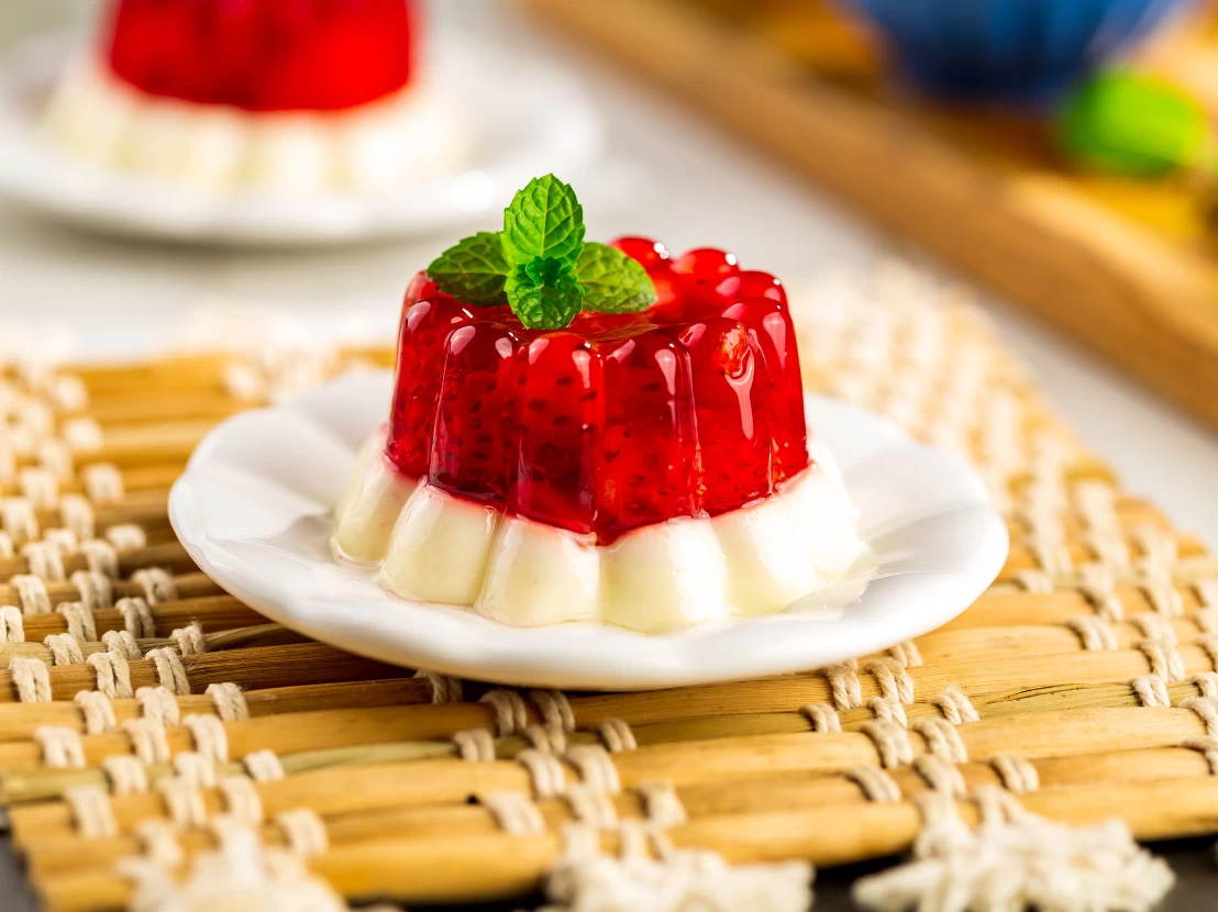 - Acrescente o creme a gelatina de morango já firme e devolva à geladeira por mais 2 horas.