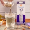 - Em uma panela, coloque o Leite A2 Integral Piracanjuba, a canela em pau, mel e o cravo. Deixe esquentar por 2 minutos.