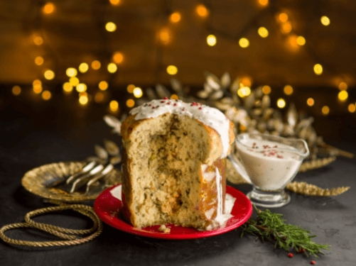 - Na hora de servir, retire o panetone do papel, coloque em uma travessa e regue-o com o creme aromatizado.