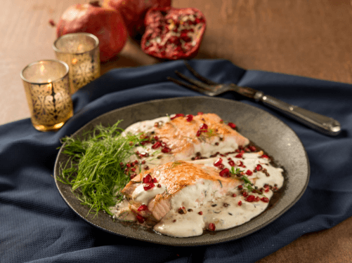 - Adicione o Creme de Leite Gourmet Piracanjuba, o dill e as pimentas e deixe cozinhar, sem deixar ferver;