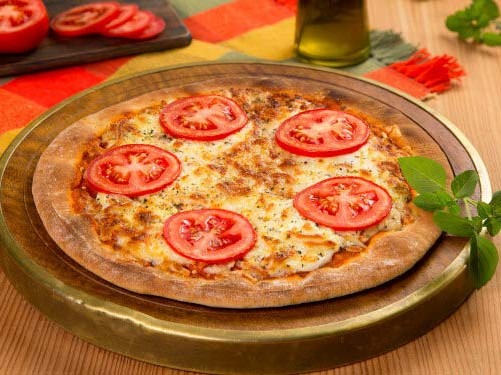- Espalhe a mussarela ralada por cima do molho de tomate, em seguida espalhe os tomates em rodelas;