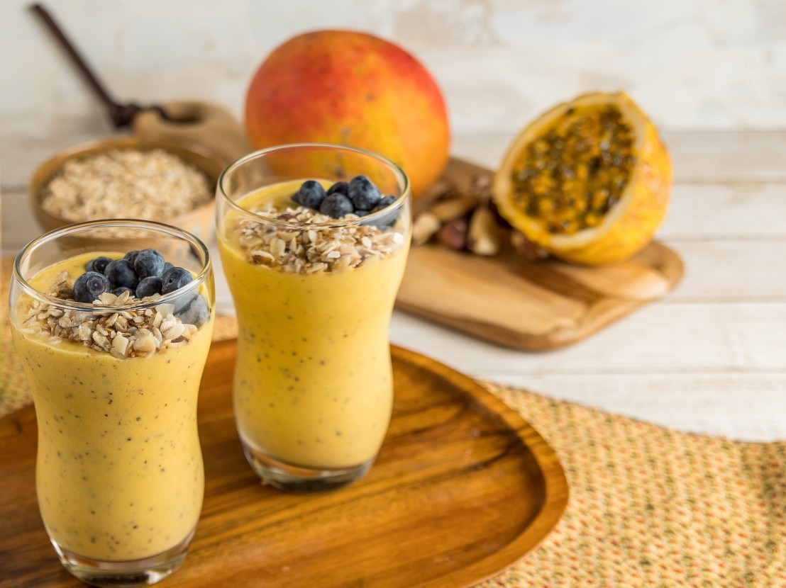 - Em um liquidificador, bata o Piracanjuba ProForce Coco, o maracujá e a manga, até obter um creme;
