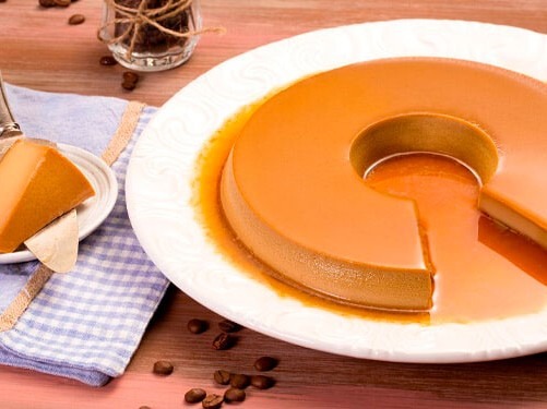 - Em uma panela, faça o caramelo com o açúcar e a água. Coloque a calda em uma forma pequena com furo central e reserve;