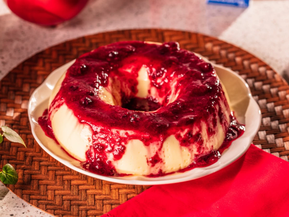 Pudim de Chocolate Branco com Frutas Vermelhas