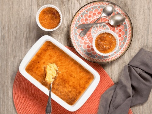 - Coloque o refratário com a queijadinha dentro de uma assadeira. Preencha o fundo da assadeira com água quente. Leve ao forno preaquecido. Deixe assar por, aproximadamente 20 minutos, ou até que a queijadinha esteja cremosa no centro e dourada na superfície;