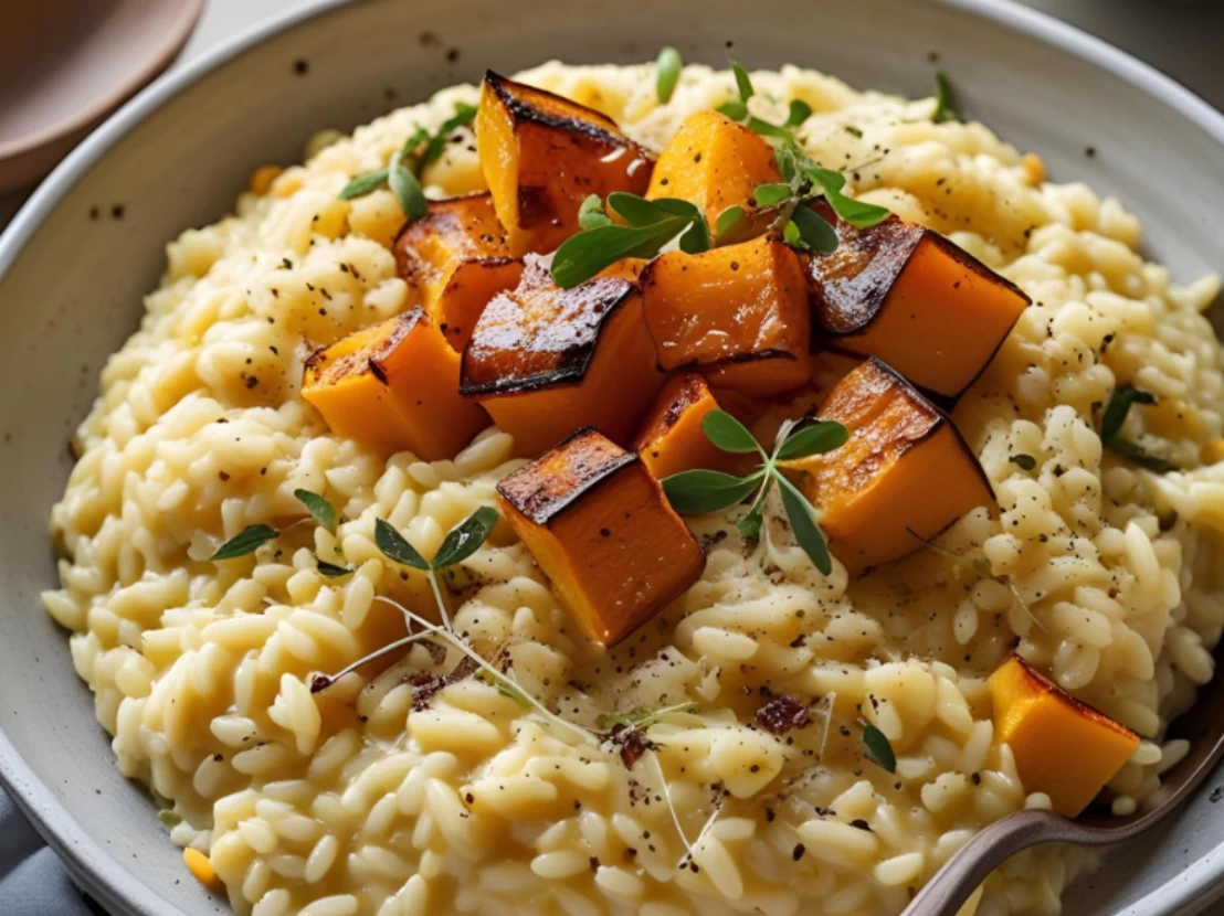 - 1 xícara de cubos de abóbora assada (cabotiá ou japonesa)