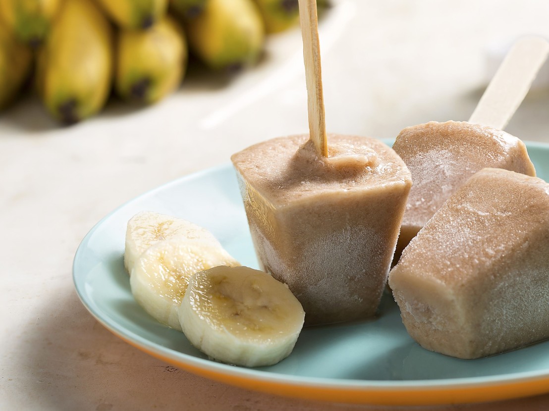 - Leve ao congelador por 40 minutos. Quando o sorvete estiver mais firme, coloque os palitos e devolva ao congelador até ficar com consistência de sorvete.