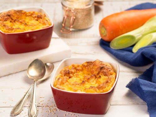 - Desligue a batedeira e misture, delicadamente, as claras com a massa de cenoura, a quinoa cozida e o alho poró refogado;