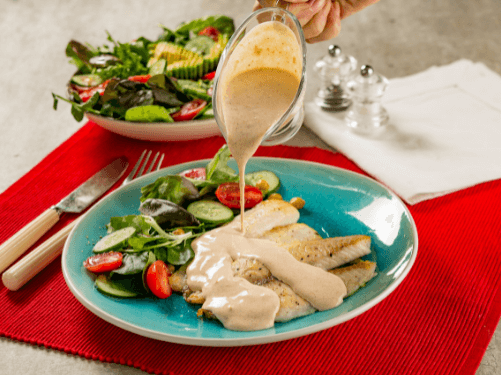 Tilápia com molho cremoso de páprica e salada