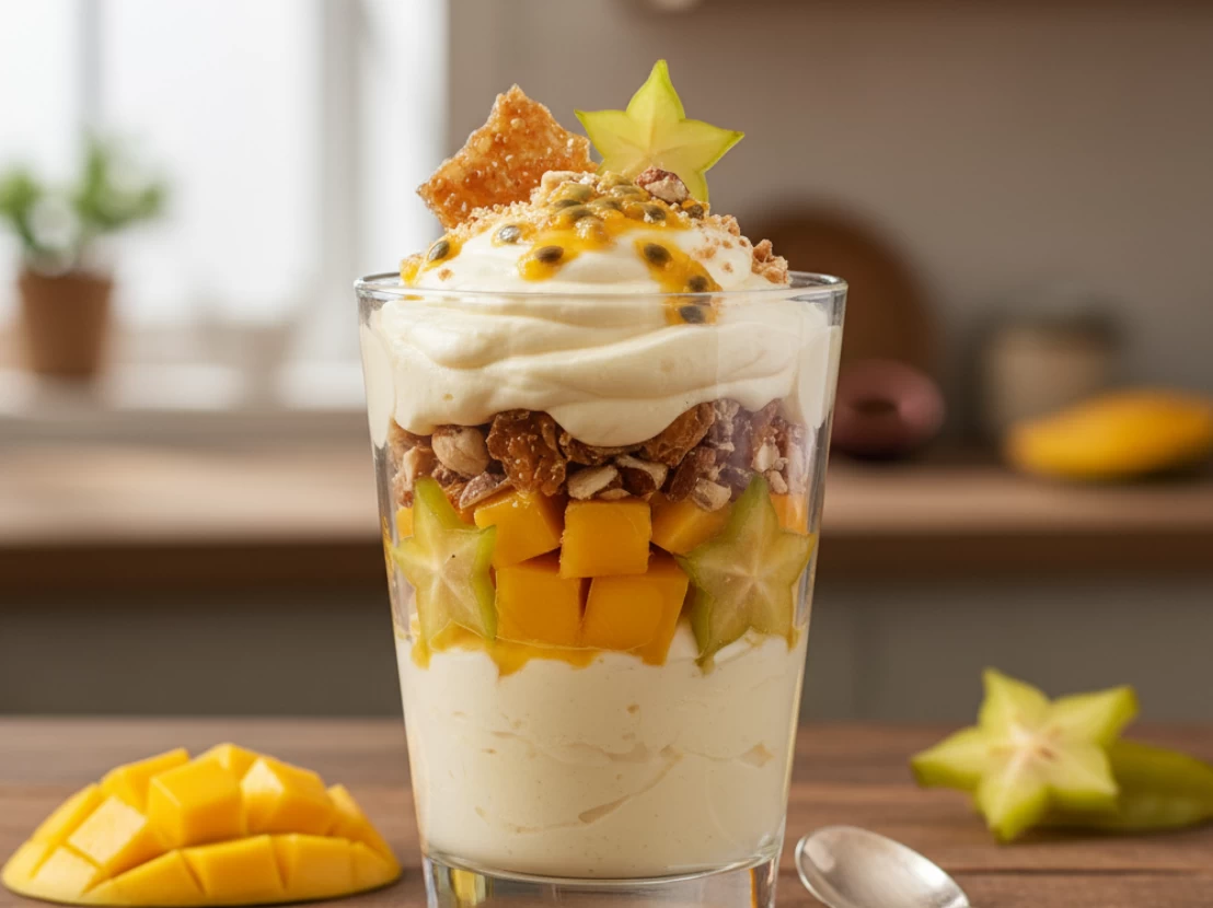 Verrine de Leite Condensado, Frutas Amarelas e Crocante de Avelã