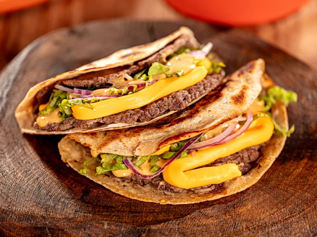 - Pegue seu pão de tortilla e por cima amasse bem a carne moída ;